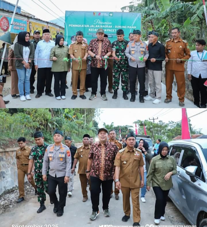 Bupati Bandung, H.M. Dadang Supriatna bersama Wakil Ketua DPR RI Dr. (H.C.) Cucun Ahmad Syamsurizal meresmikan Jembatan GR Cikawao dan Jalan Nagrag pada Senin (15/9/2025). Infrastruktur tersebut menjadi penghubung wilayah strategis di Kecamatan Pacet.