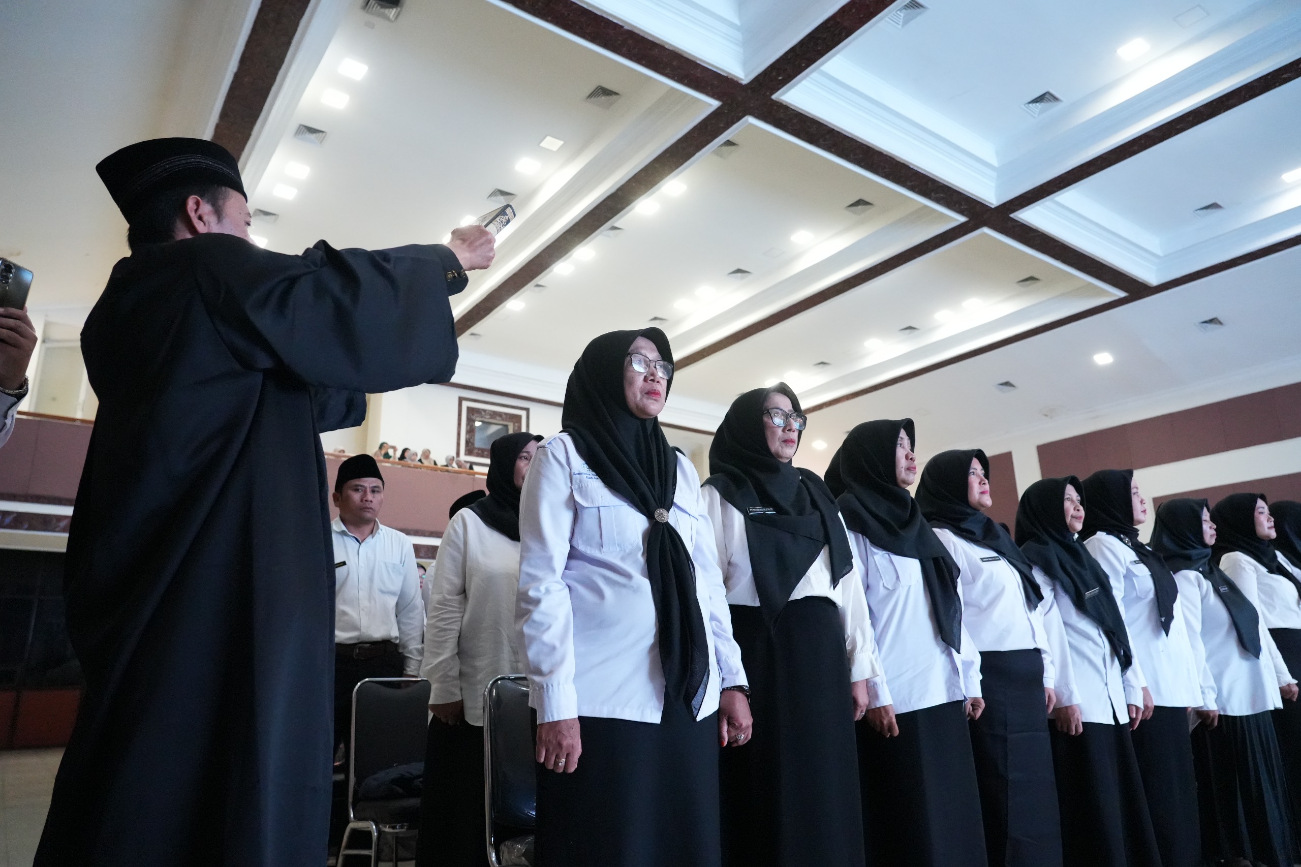 Bupati Bandung Dadang Supriatna melantik 309 kepala sekolah Sekolah Dasar (SD) dan SMP Negeri di Kabupaten Bandung. Pelantikan digelar di Gedung Moch Toha, Kompleks Pemkab Bandung, Soreang, Jumat (28/11/2025).