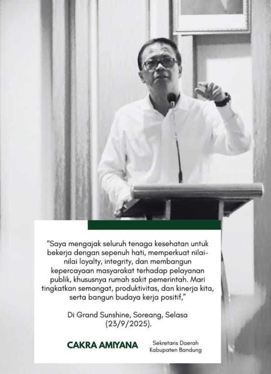 Sekretaris Daerah Kabupaten Bandung, Cakra Amiyana, meminta aparatur sipil negara (ASN) di sektor kesehatan agar lebih adaptif, inovatif, dan kolaboratif dalam menghadapi tantangan zaman yang dikenal dengan istilah VUCA (Volatility, Uncertainty, Complexity, Ambiguity).